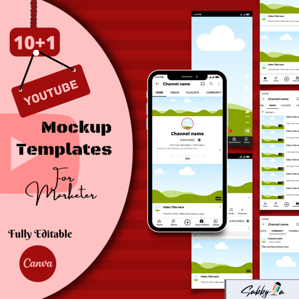 Fully Customizable YouTube Mockup Bundle | YouTube Mockup Canva Templates | Editable Canva YouTube Template