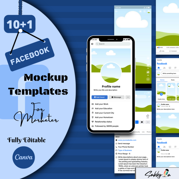 Fully Customizable Facebook Mockup Bundle | Facebook Mockup Canva Templates | Editable Canva Facebook Template