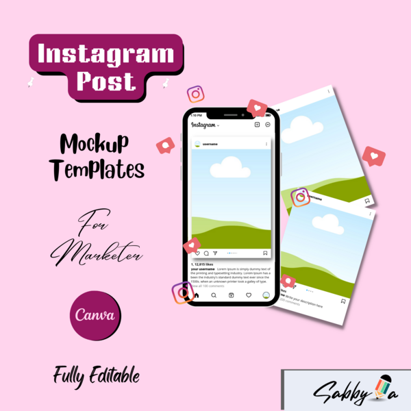 3 Instagram Mockup Bundle, Instagram Mockup Canva Templates, Editable Canva Instagram Template, Post Mockup