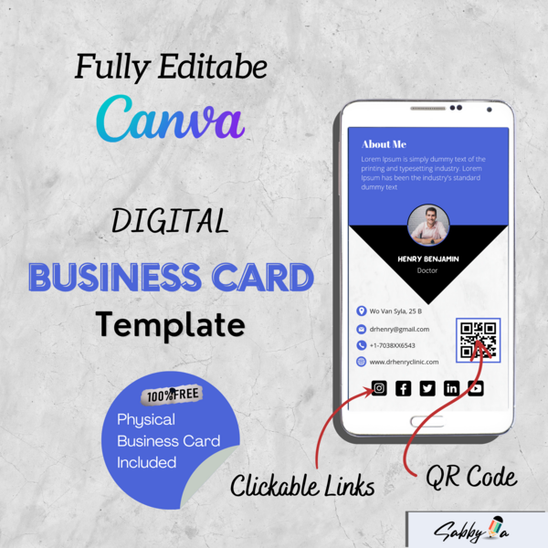 Digital Business Card with QR Code | Digital Business Card & Business Card Bundle | QR Code Digital Business Card Canva Template | Physical Business Card