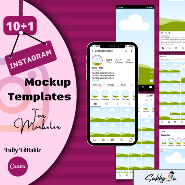 Fully Customizable Instagram Mockup Bundle | Instagram Mockup Canva Templates | Editable Canva Instagram Template