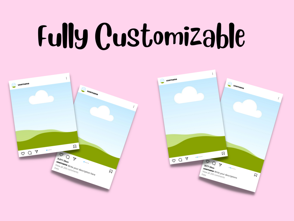 In this bundle, you get 4 Instagram post mockups templates. You can fully customize these mockups and add your beautiful designs to them. All necessary mockups are included in this bundle. All elements used in this bundle are absolutely free so you can easily access them in your Canva free account.
